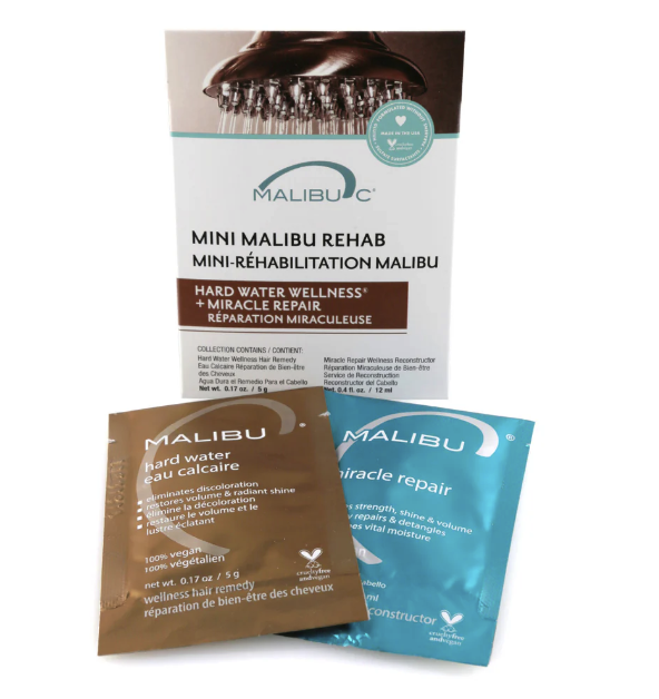 This duo treatment first hard water remedy removes hard water deposits and impurities, eliminates color discoloration and damage caused by color absorption. Second, Miracle repair hair reconstructor deeply penetrates for superior moisture retention, restores manageability.